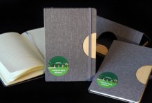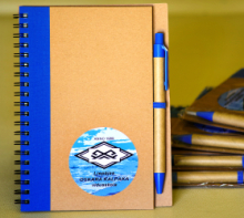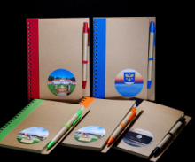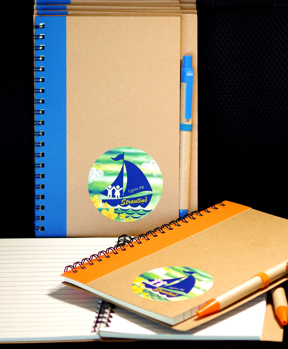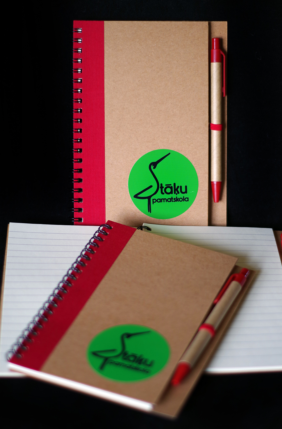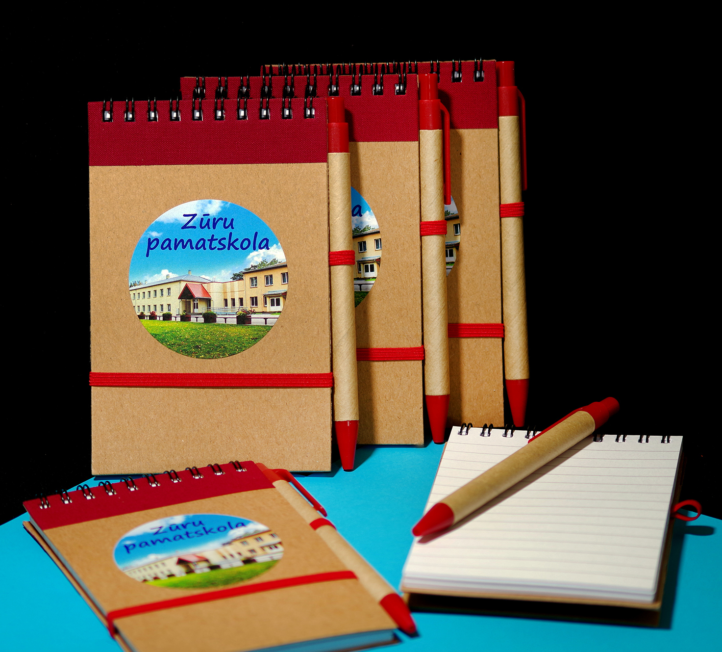 ■ Klade izmērā 13,7x18 cm ar 60 līniju lapām un vākiem no pārstrādātā kartona, kam piestiprināta pildspalva. Katra klade iesaiņota caurspīdīgā maisiņā. Jums drukāta uzlīme 60mm diametrā. Cenas ar PVN par vienu kladi atkarā no pasūtītā daudzuma:
