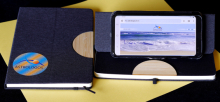 ■ Cieto vāku A5 formāta (14,5x20 cm) klade ar Jums drukātu 60 mm uzlīmi, 80 līniju lapas, grāmatzīme un gumijas vāka un pildspalvas fiksēšanai. Bet - šī nav tikai klade - pateicoties dubultajam pirmajam vākam, to var izmantot kā tālruņa paliktni. Katra klade iesaiņota caurspīdīgā maisiņā - dāvana gatava pasniegšanai. Cenas ar PVN par vienu kladi atkarā no pasūtītā daudzuma: